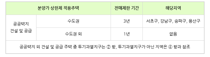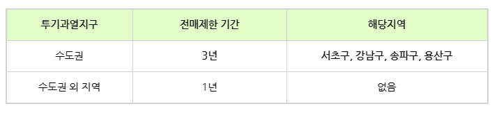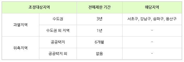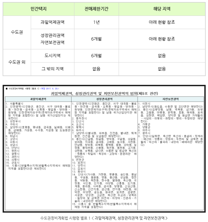 | ●결론 수도권 서초구, 강남구, 송파구, 용산구 외 과밀억제권역 : 1년 수도권 성장관리권역 및 자연보전권역 : 6개월 광역시 도시지역 : 6개월 |