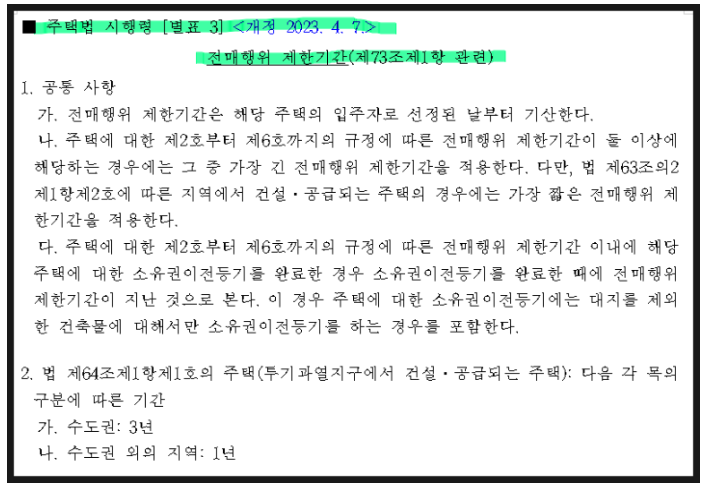 2023년 4월 7일부로 주택법 시행령이 개정되면서