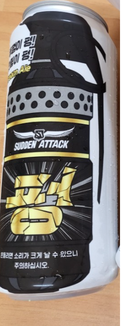 캔의 앞뒤가 수류탄 모양으로 되어 있어서 손에 들고 있으면 신기하고 재밌었습니다. 또 인기 슈팅 게임인 서든어택과 콜라보레이션을 한 것 같더군요. 저는 서든어택을 해본 적은 없지만 게임을 좋아하는 분들은 이 맥주를 보면 더 반할 것 같습니다.