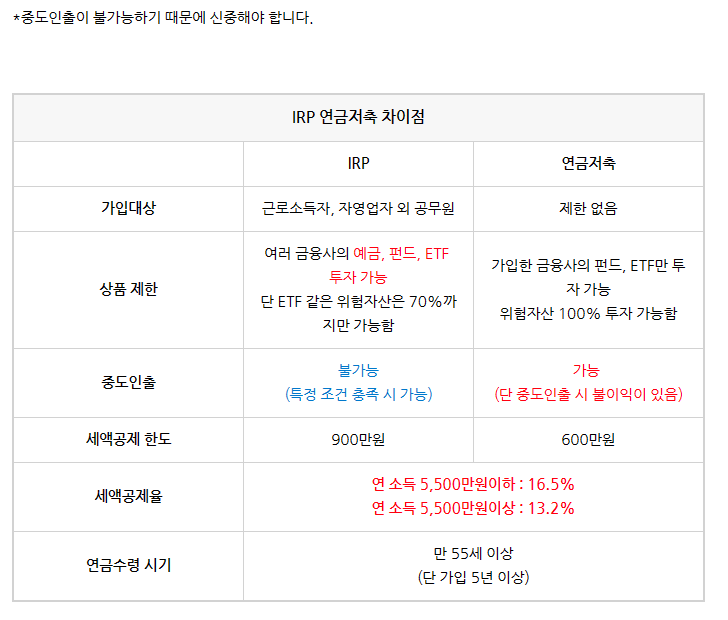 다만 연금저축펀드와 다르게 irp는 중도인출하려면