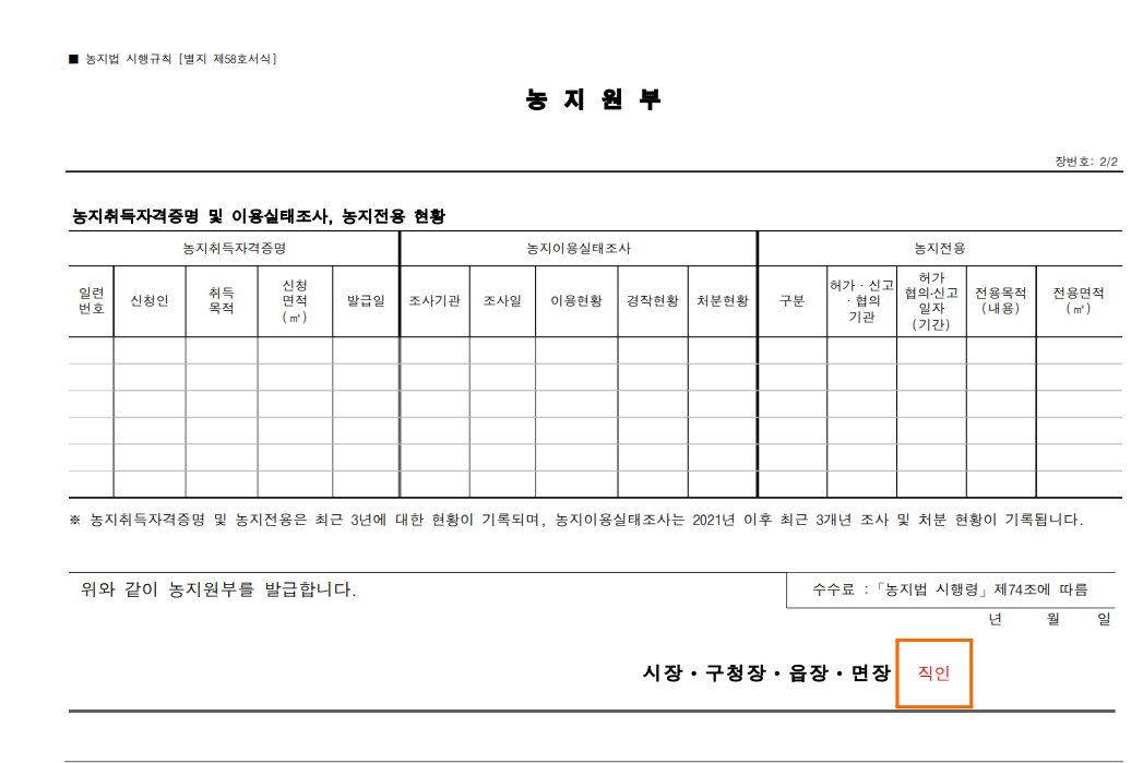 2. 농지원부 양식